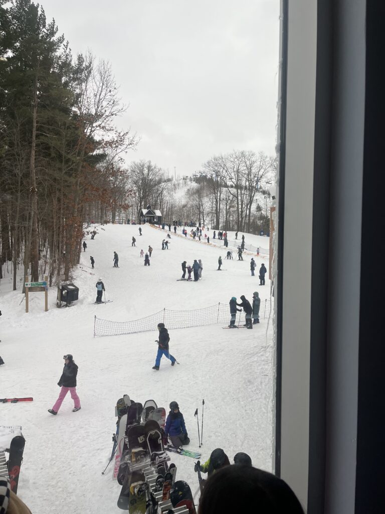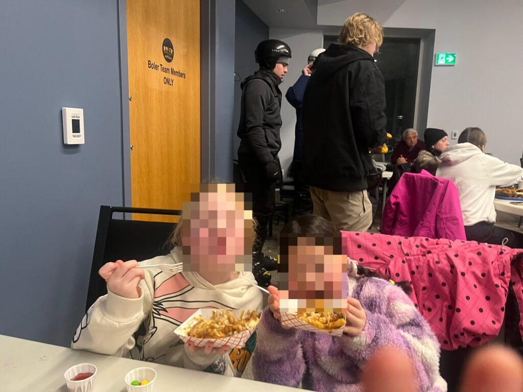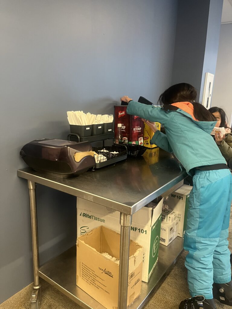 私たちが買ったのは12:30~4:30PMの4時間楽しめる券。ですがなにしろ初心者なので途中で疲れて、3:30PMごろ私と下の娘は建物の中へ。ここでは給水機、食べ物を買えたり、机といすがたくさんあって、暖房もきいてます。最高。もうゲレンデには戻れません笑 この時上の娘は親友と親友の叔母(親友のママが急遽助っ人として呼んでくれてた)で初心者用ヒルを抜け出し上級者の方のヒルへ。