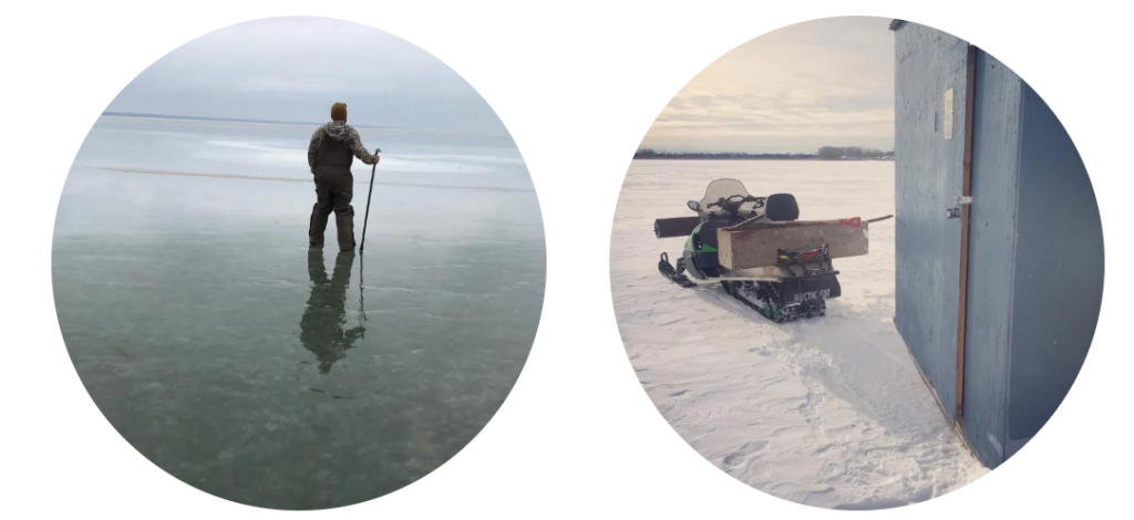 氷の厚さは気になるところですよね。氷が薄過ぎたら極寒の湖に落ちますから命を守るためにとっても大事なポイントです。