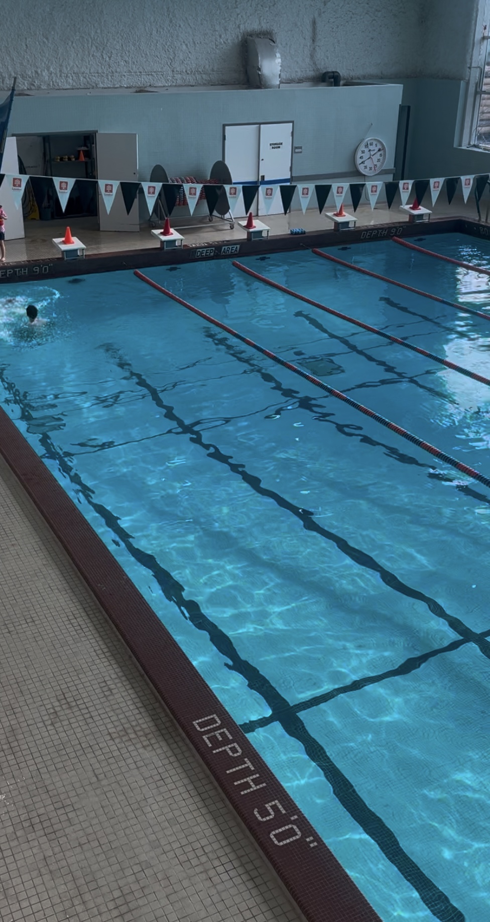 日本のプールにも、若干浅いところと深いところがありますよね。カナダのプールにも浅いところと深いところがあります。で、、、浅いところが1mくらいだけど、深いところが9フィート、なんと2.7m。(プールによるかもしれませんが、皆さんの行ってるプールどうですか?)泳げない私からしたら、いやいや深すぎよ、何してくれてるのて感じです。
