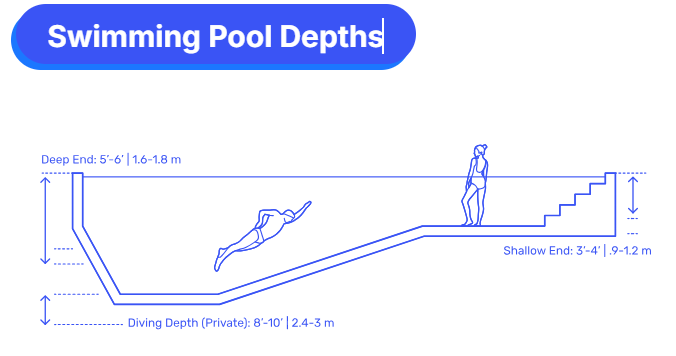 ちなみに最寄りのプールがこんな感じなので画像張っておきます(画像のリンク先とプールは関係ありません)下の図、女性が立っているところもゆるい傾斜がついていて1m⇒1.5mくらいまで徐々に深くなります。15mくらいから急にぼこっと深くなり一番深いところが2.7mほど。これが6レーンすべてこんな感じです。